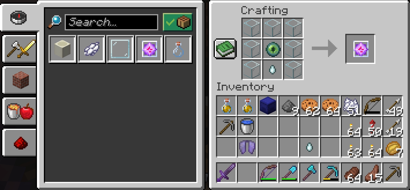 Debes utilizar la lagrima de ghast junto con un ojo de ender y cristales al rededor para crear un cristal de en como se muestra en la imagen a continuación: