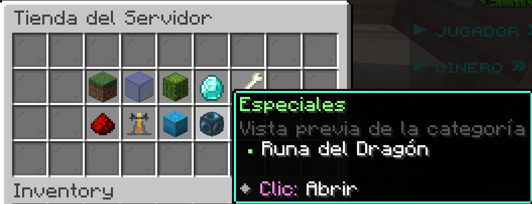 Una vez tienes los 4 cristales de end deberán de conseguir una Runa del Dragon eso lo pueden conseguir únicamente comprándolo en la tienda del servidor, para acceder deben usar el comando /tienda en la cual les aparecerá una ventana y deberán dirigirse a la sección de bloques especiales.
